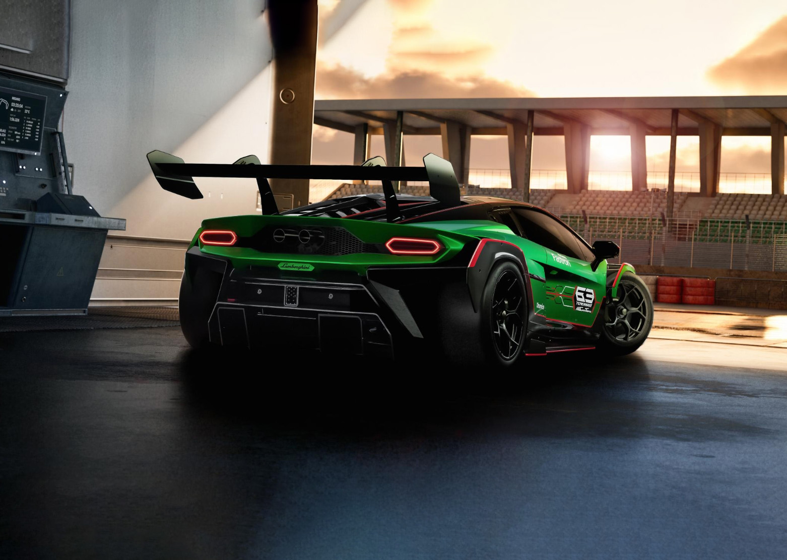 外观设计上,新车完美的展现了赛车的酷炫、动感基因,将空气动力学与兰博基尼标志性的激进风格完美融合。前脸部分,采用极具张力的蜂窝状进气格栅,巨大的通风口可快速导入气流为制动系统降温,两侧犀利的LED灯组造型如同利刃,点亮后极具视觉冲击力。