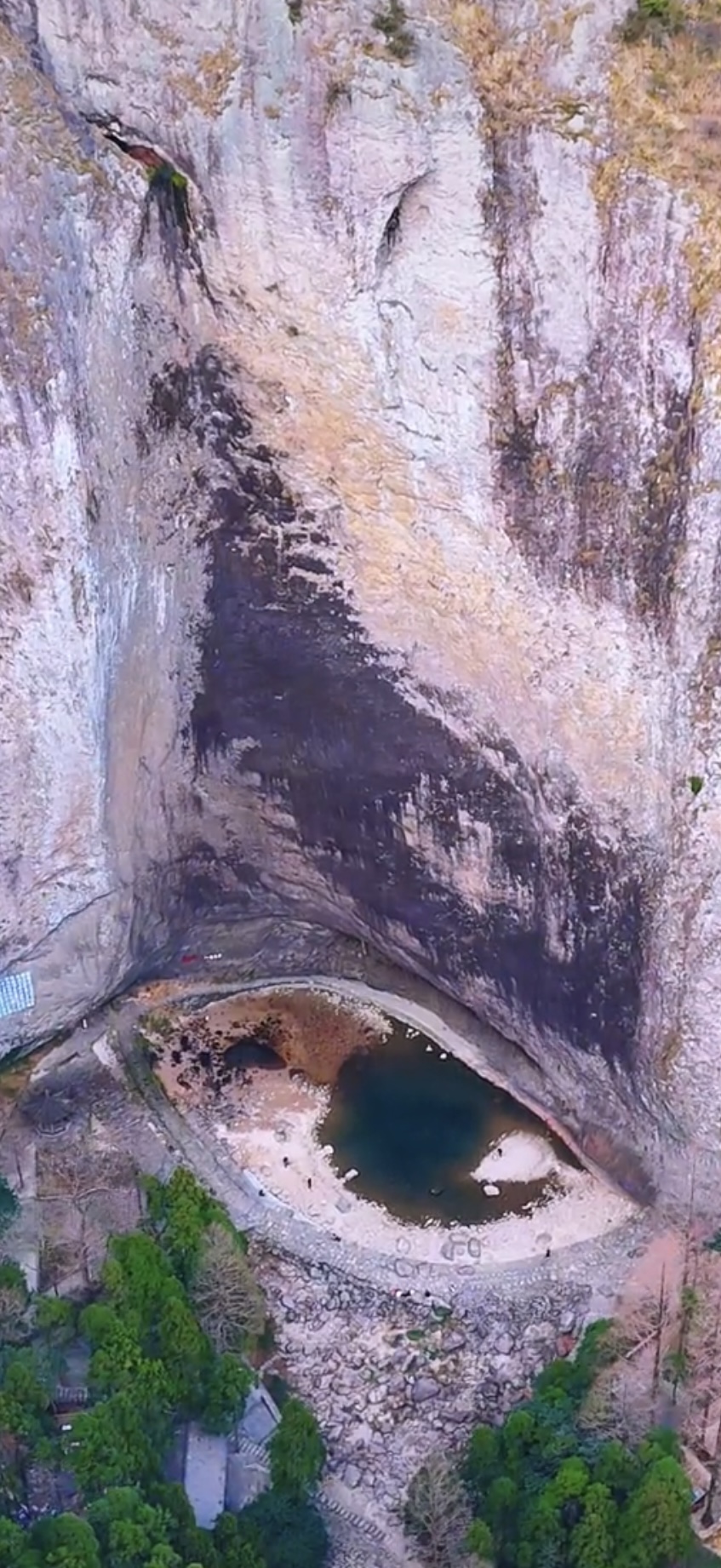 1月22日,封面新闻记者联系到视频拍摄者林林。“视频是1月17日下午用无人机拍摄的,没想到会火了。”她说,她在景区当了23年的导游,瀑布下的潭水一直都有,往年枯水期潭水水位没有下降这么多,“龙眼”没有这么明显、形象,今年这种情况很罕见。
